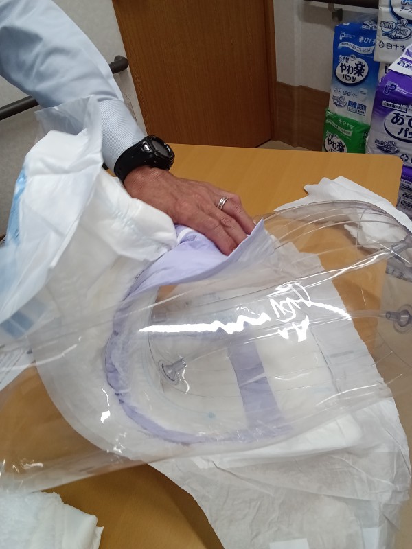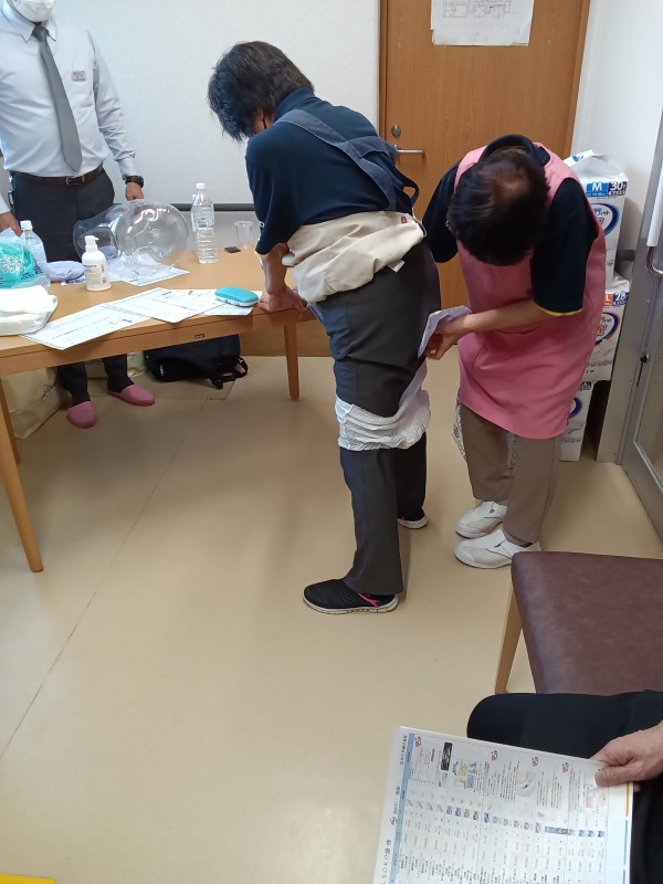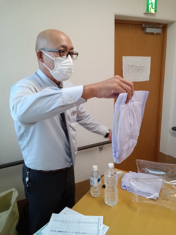 メーカーさん 白十字社の営業様をお呼びして 「正しいオムツの選び方」「高機能のオムツ パット」の説明をして頂きました。