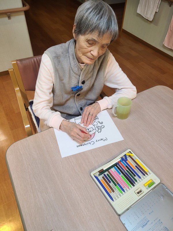 先日クリスマスの塗り絵レクリエーションを行い、入居者様それぞれの感性で色鮮やかな作品を完成させてくださいました