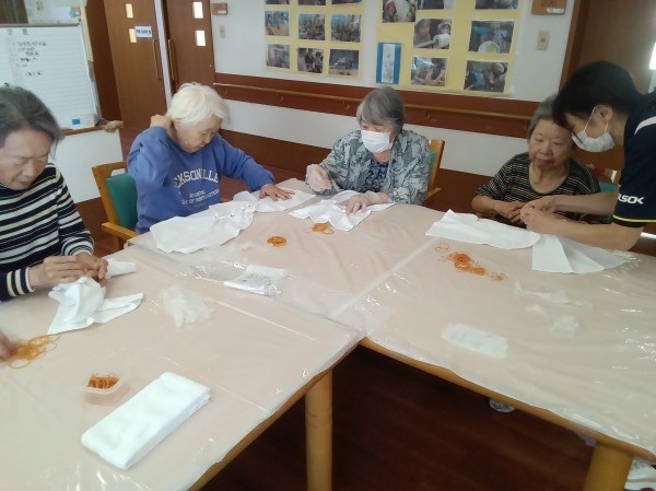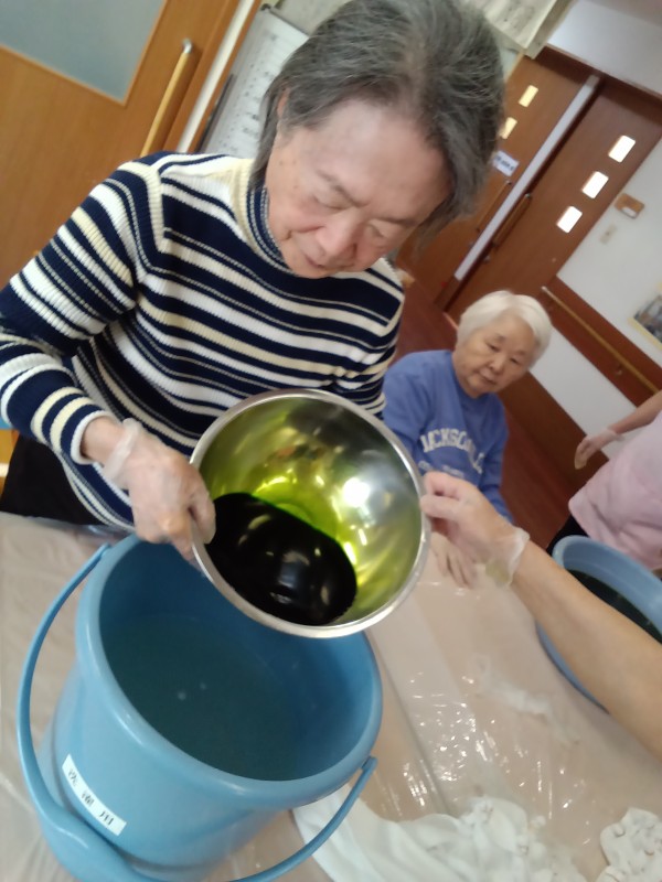 今回は2階の皆さんが、タオルの手染めに挑戦しました~(#^.^#)