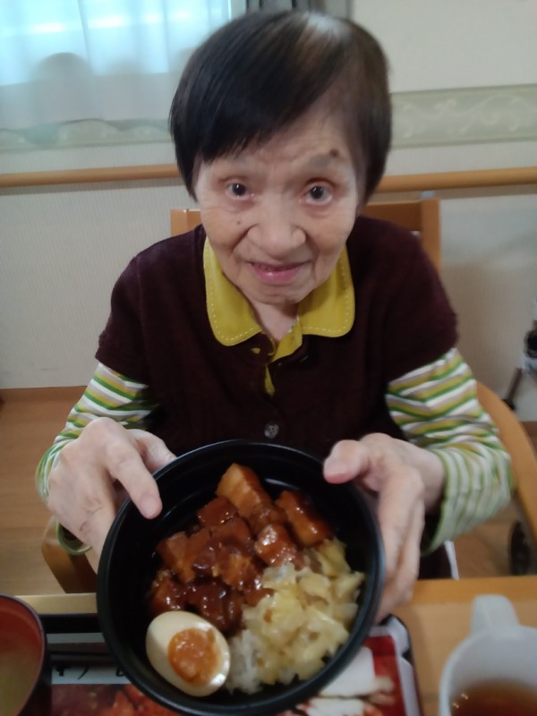 「豚の角煮丼、好きなのよ~。とっても美味しいです」と仰りながら召し上がっていらっしゃいました。