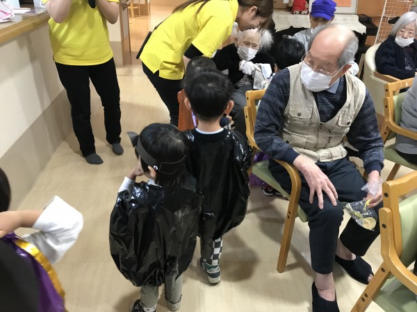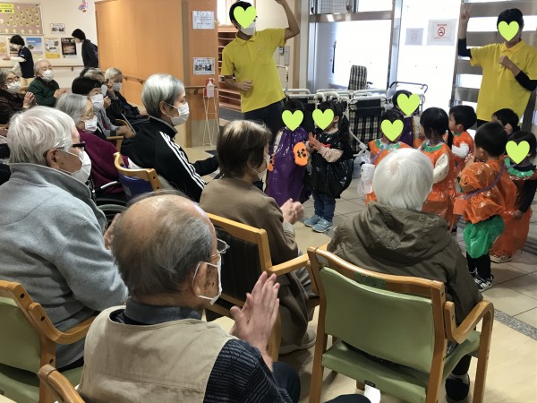 お菓子を配った後は、園児による「おもちゃのチャチャチャ」をちょっとアレンジした、「かぼちゃのチャチャチャ」のお披露目がありました♪