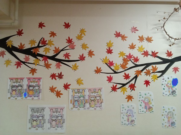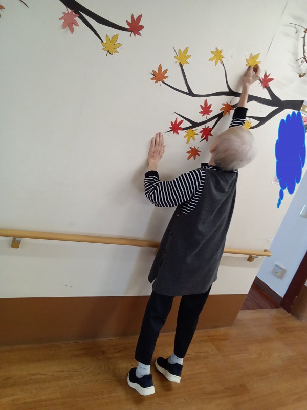 ホーム内にももみじが飾られています(´▽`)