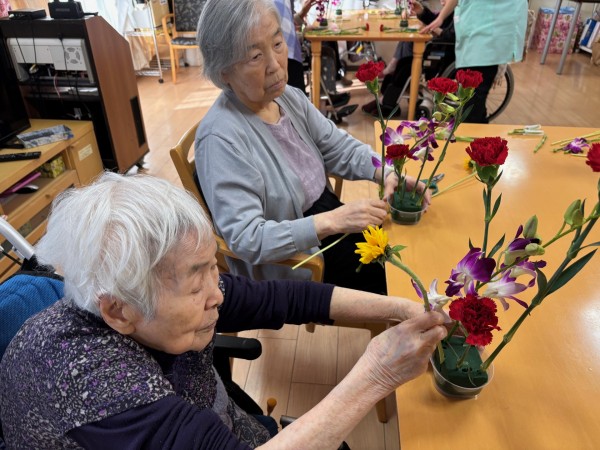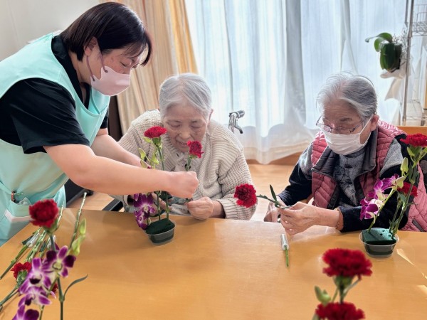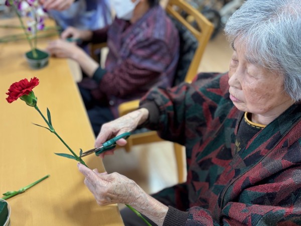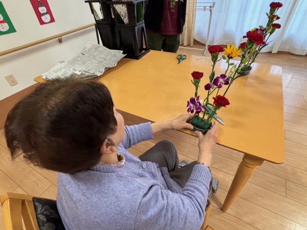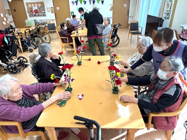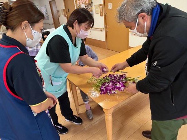 先日有償サービスで南中丸では初めてのフラワーアレンジメント教室が開催!