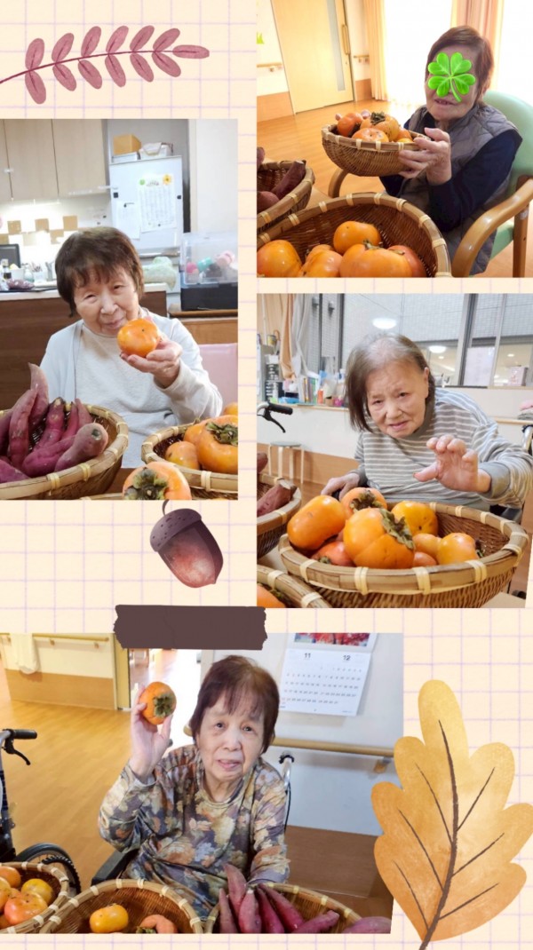 この日は秋の味覚である柿とさつまいもを手に皆さまと一緒に写真を撮りました(^^)