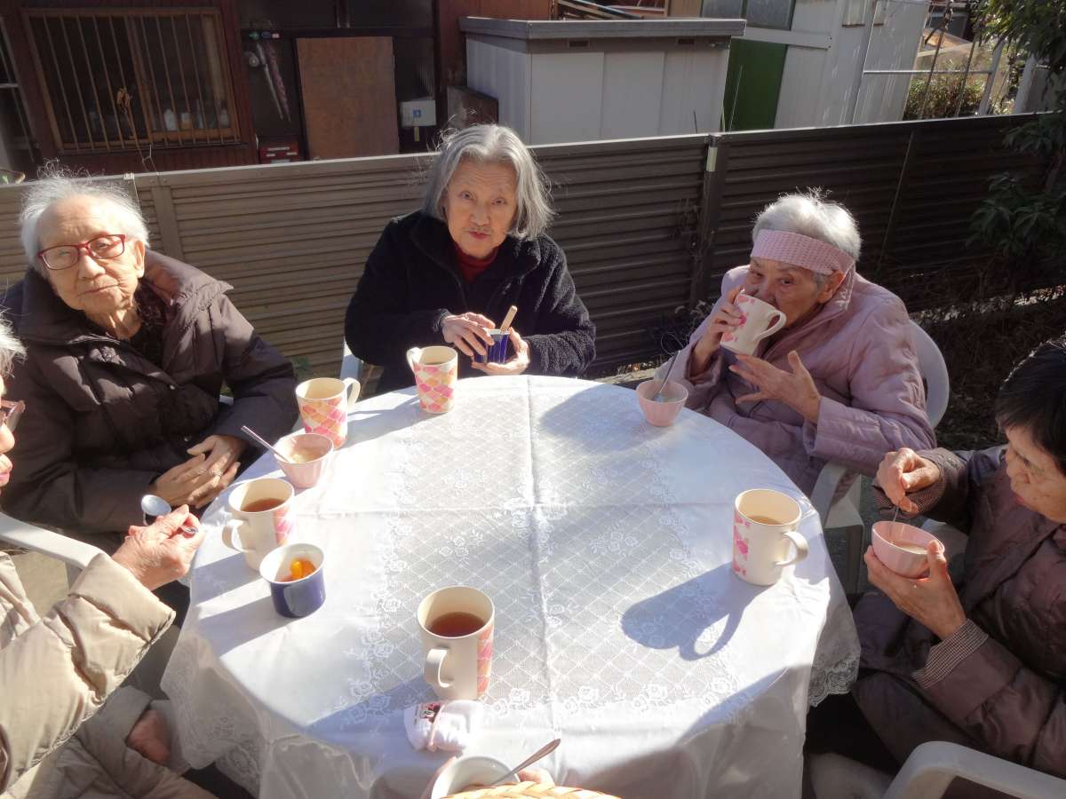 1階2階合同で「お茶会を兼ねて外気浴」を行いましたよ!