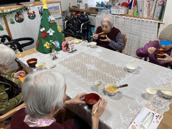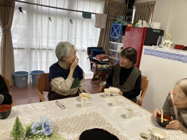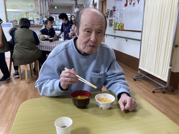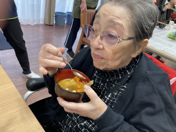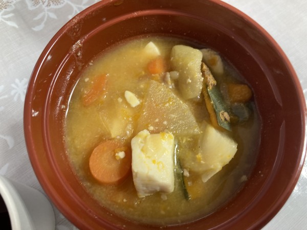 今回はついに完成したけんちん汁を食べている様子のご紹介。