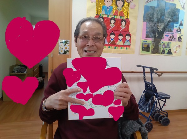 手作り色紙をじっくりと眺められ、涙を流して喜んでくださいました。