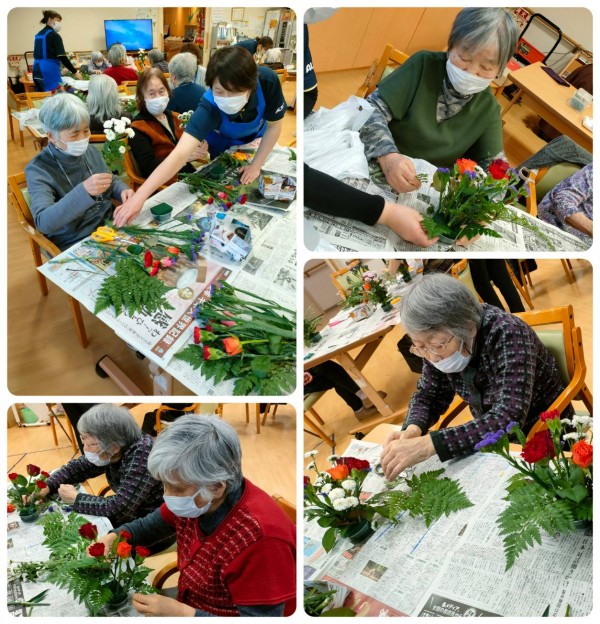 毎月、皆さんが楽しみにされているフラワーアレンジメントのご報告です。