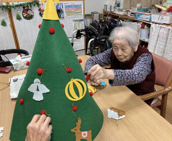 1階の利用者様に飾り付けの