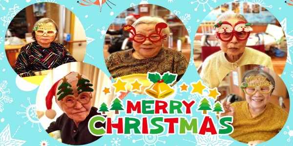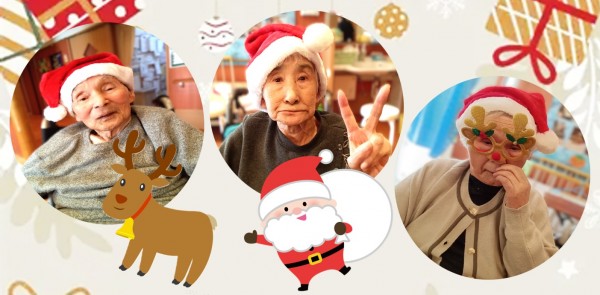 ご入居者様にはサンタクロースの帽子や かわいらしいクリスマスグッズを身に着けて
