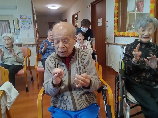 最初は寒い寒いとおっしゃっていたご利用者様も、体を動かしているうちに体が温まってきたようで、穏やかな表情で体操に参加されていました(*^^*)