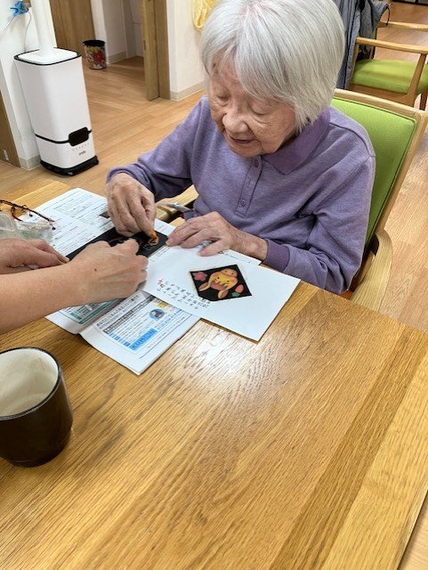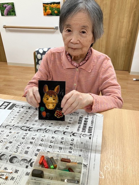 来年の干支、可愛い馬を夢中になって塗ってらっしゃいました。