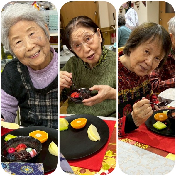 今回は手作り餡子を使って【手作りあんみつとフルーツ盛り合わせ】でした。