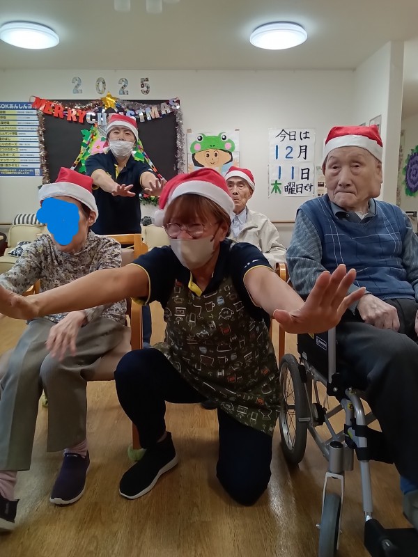 今回も準備運動から始まりクリスマスソングに合わせて体操を行いました。