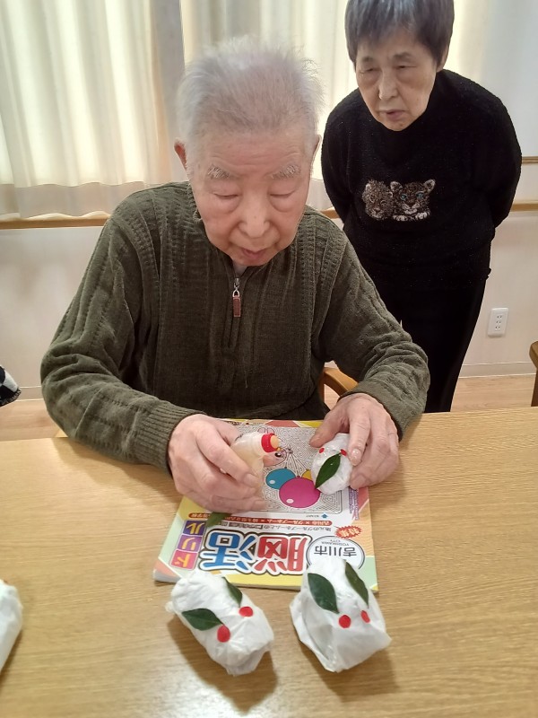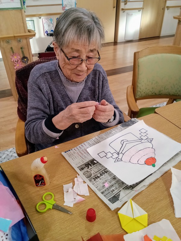 私は貼り絵で鏡餅を作成中(^o^)v