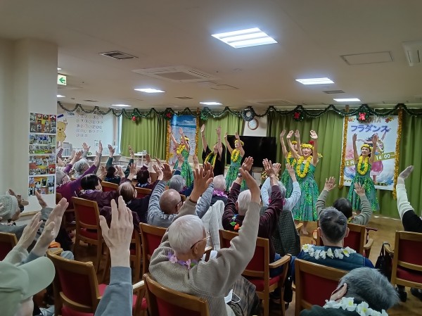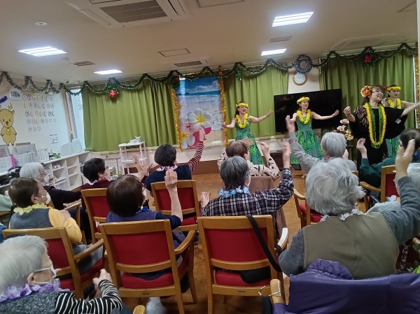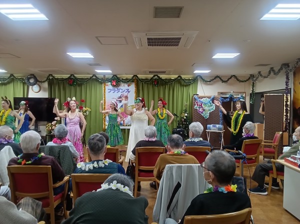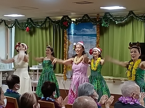 6曲程の音楽に合わせてのフラダンスに、クリスマスメドレーに合わせて踊りを拝見しました!