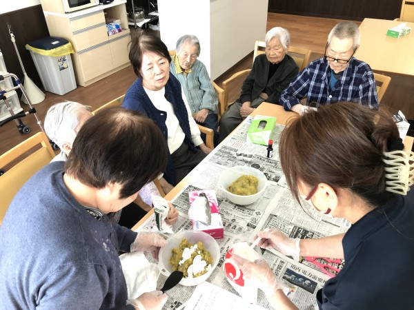 お芋堀りのさつまいもを食べるレクをしました^▽^)/ 前編