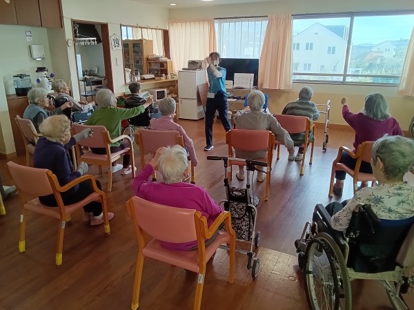 訪問ノーアは声を出しながら手足を動かし、脳を働かせることのより活性化を図る体操です。