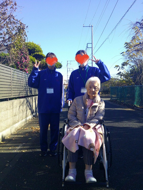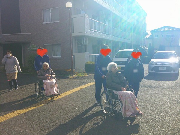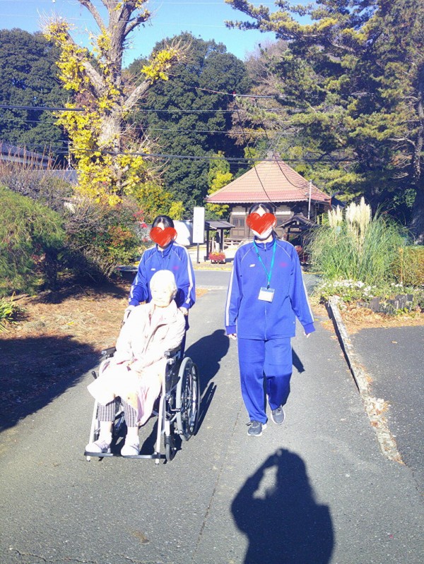 ホーム周辺を車椅子を押してお散歩。