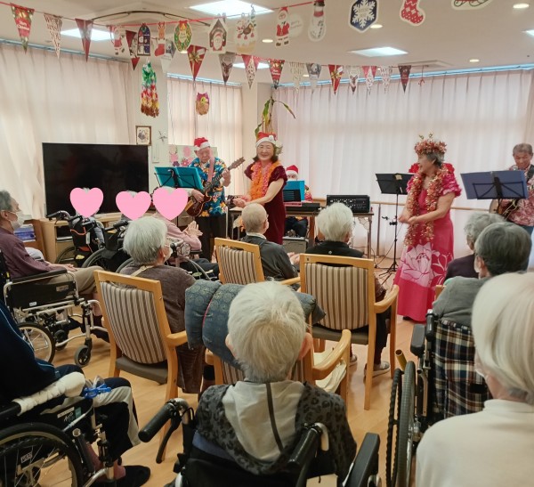 入居者の皆様は、手拍子をしたり、一緒に踊ったりと、とても楽しまれておりました♪