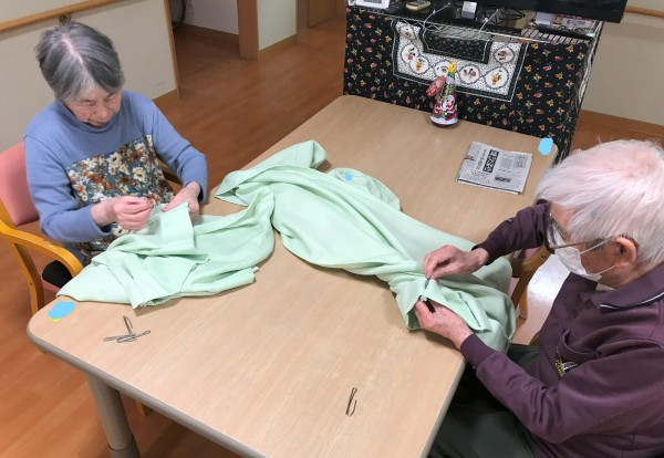 今日は大掃除のひとつ、皆さんのお部屋のカーテンを洗濯しましたので手伝って頂きました。