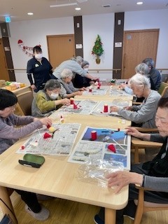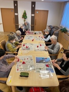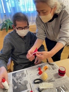 それぞれご自分で作ったサンタさんを手にしてうれしそうです、お疲れさまでした。