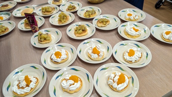 さつまいものパンケーキとみかんとホイップクリームのパンケーキ作ってくれました♪