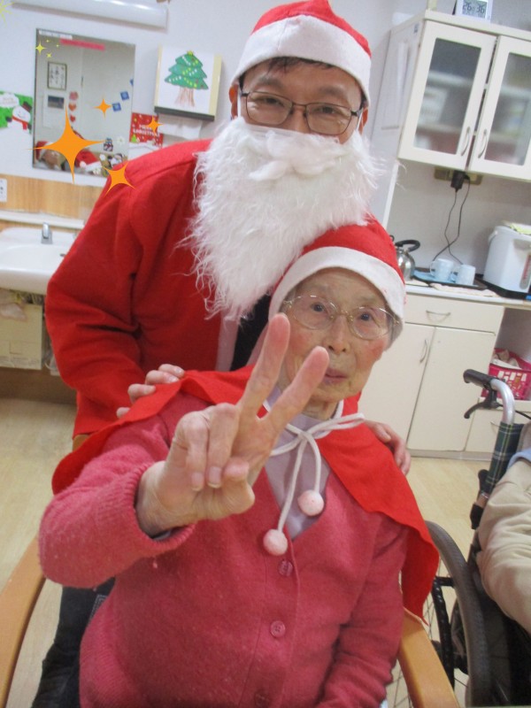 クリスマスの音楽と鈴の音に合わせてサンタさんの登場に皆さん笑顔と拍手で迎えてくださいました♪