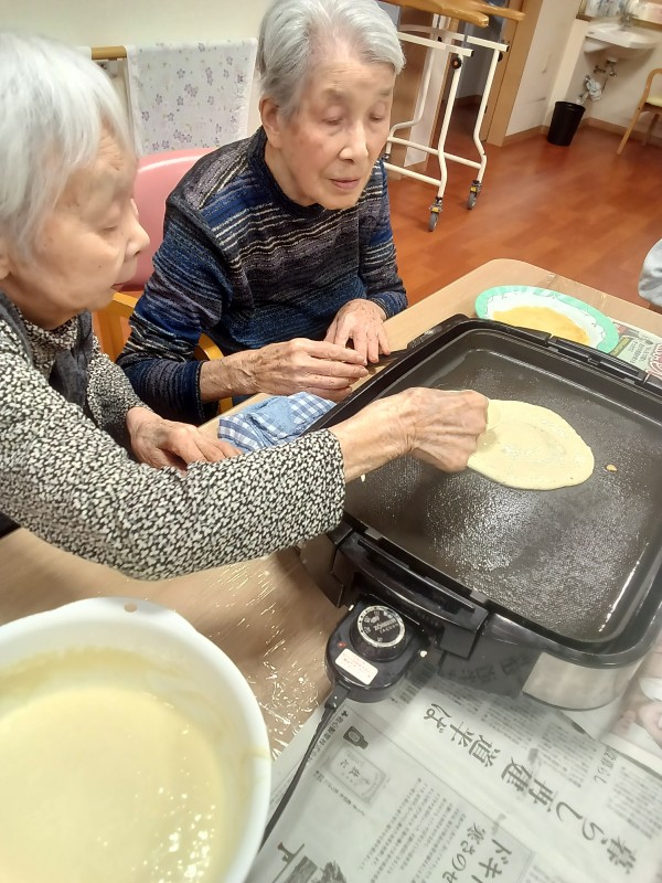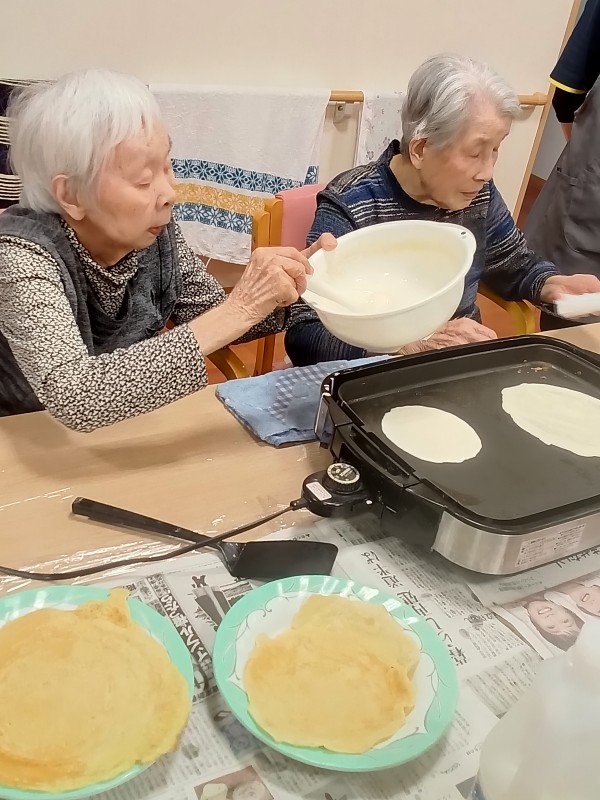 クレープをスイスイっと焼く〇〇さんと○○さん!