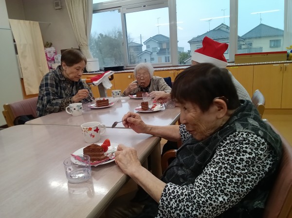今年最後の行事Xmas会おやつ編デス(^_-)-☆クリスマス会のおやつと言えばやはりケーキしかないですよね!やはり1番の盛り上がりでした(^^♪並べた順にすでに口にほうばっている方もいらっしゃいました。また、イチゴが甘くって大好評でした。ご入居者様が喜んでいただいた事が何よりのご褒美デス❤