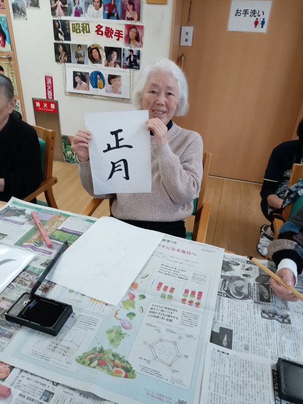 今日のレクリエーションは習字をしてみました。