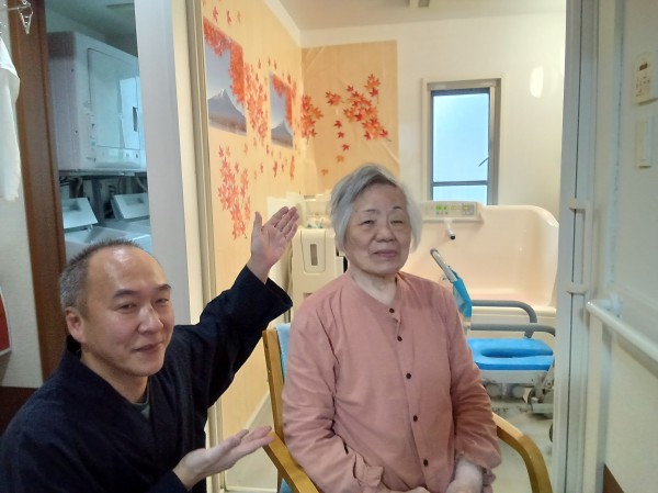 みなさん、いつもとは違う浴室を見て、キレイねぇとか、温泉みたいなど口々に感想を言ってくれましたヽ(^。^)ノ