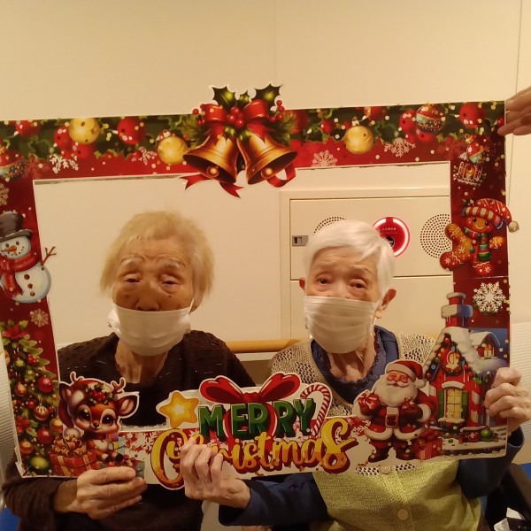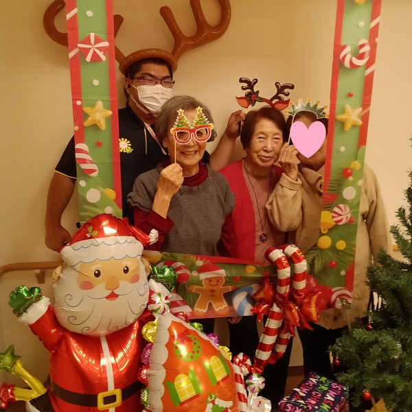 風船やサンタクロースがいて、二階は特に低い位置に風船がぶら下がっているため、食事のたびに皆さんタッチして居室へ戻られる姿がありました。