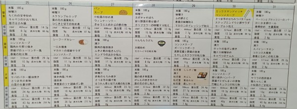1月の献立表です。