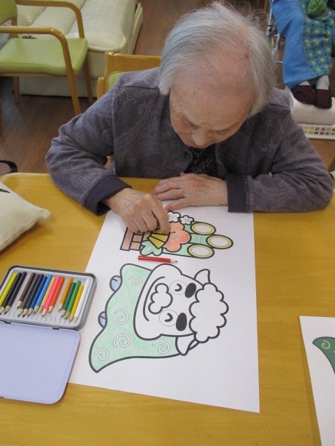 今日は2階でお正月用の塗り絵を行いました。 そのご様子をお知らせいたします!!