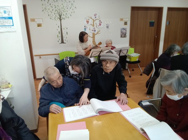 お正月の歌や昔の歌を色々とみなさまとウクレレに合わせて歌っておられました(*^_^*) 楽しいひと時をお過ごしになられました。