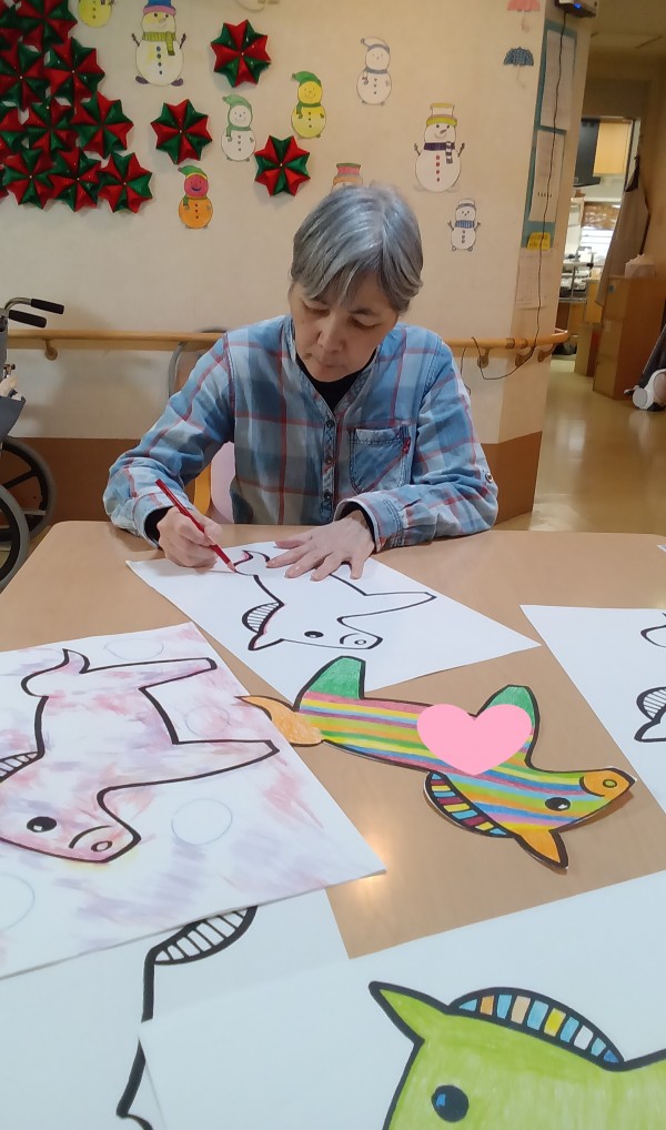 壁担当スタッフもご入居者も一緒に制作できるようにと毎月考えています。
