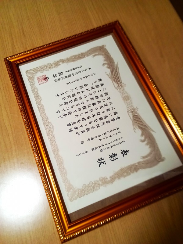 実は・・・表彰されていました!!