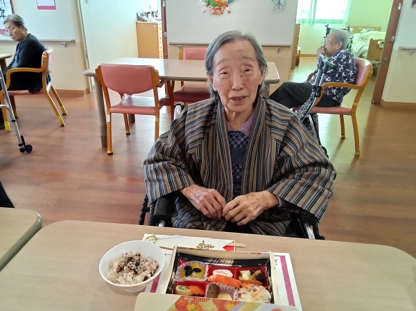 赤飯、お吸い物と一緒に食べてもらいました。