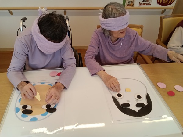 お正月2日目、たくさんの笑いと笑顔をお届けしたいと思い、皆様で福笑いを行いましたよ~♪