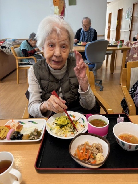1月1日、ホームでは皆さんと一緒にお正月を迎えました。