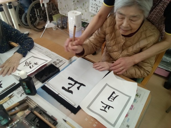 筆を持つととても真剣な表情で取り組まれて