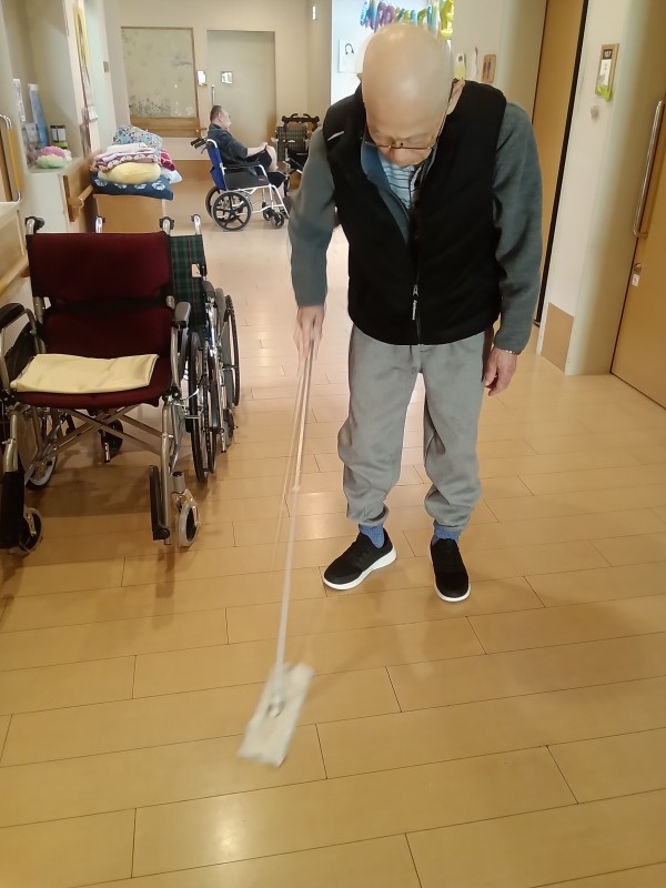 本日は廊下のお掃除を職員とされました(*^^)v足元を確認されながらご自身のペースで丁寧にお掃除されました(ㅅ˙³˙)♡