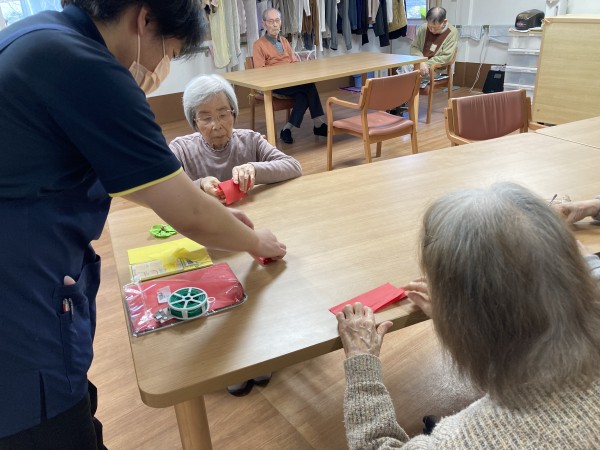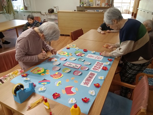 縁起の良いものがいっぱい詰まった新年の壁飾りの完成です♪
