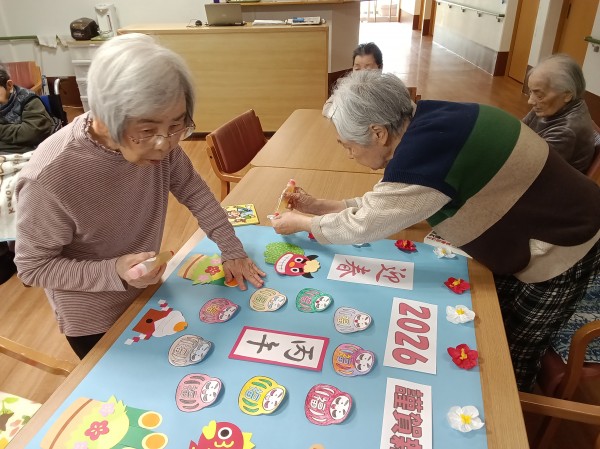 そして、前もって色を塗っておいたダルマや門松たちと貼り付けていったら・・・