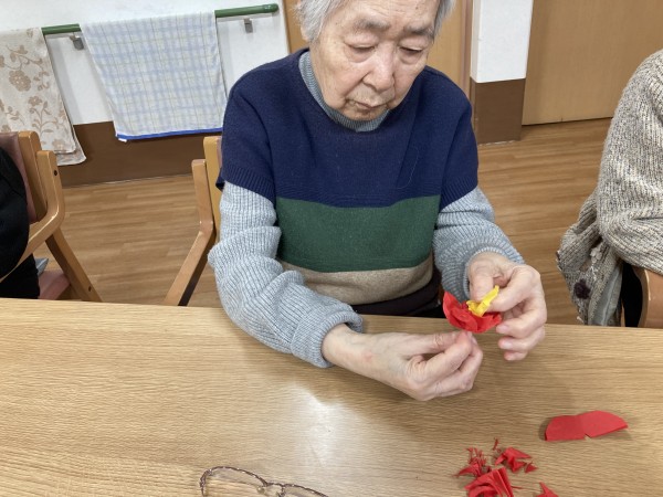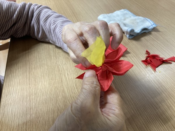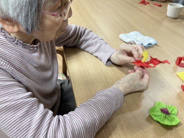 まずは皆さんにお花紙をひたすたら折っていただきます!