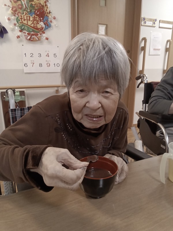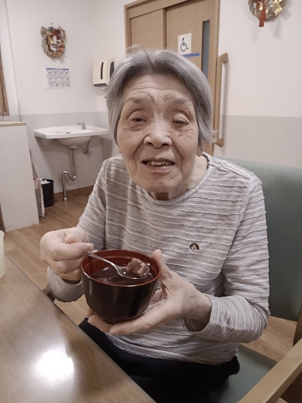 初詣で外出し冷え身体をお汁粉で温めて頂きました。