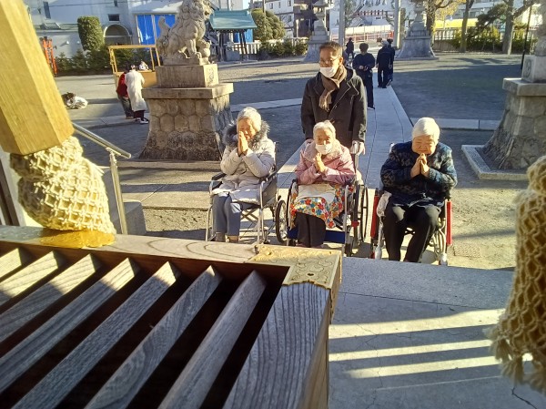 普段はあまり、外に出られない方や、外に出たがらない方々も、初詣に行きましょ!とお誘いすると、「お参り?行きたいねぇ」と、二つ返事でお出掛けになりました(*^-^*)