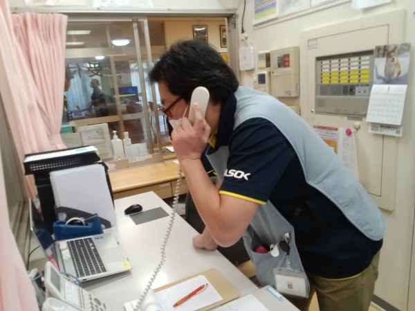 ALSOKガードセンターに非常時通報をする想定で防犯訓練を実施しました。