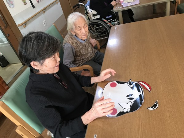やっぱり元旦レクは福笑い!皆でたくさん楽しめました。